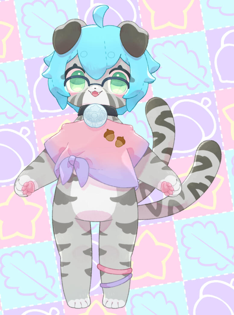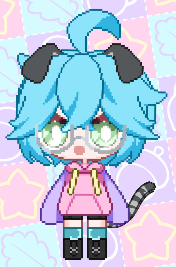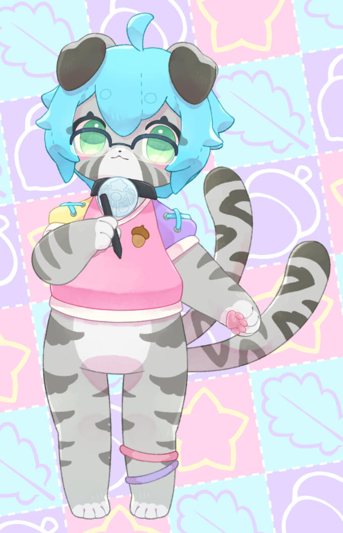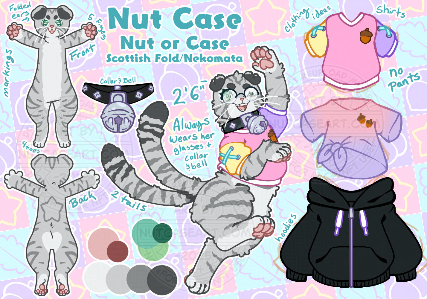 If you draw Nut Case feel free to have fun with it. I don't care about the hair style or clothing style. Nut Case can change her form so it doesn't really matter. She just always has her blue hair, green eyes and the grey markings with 2 tails! <3